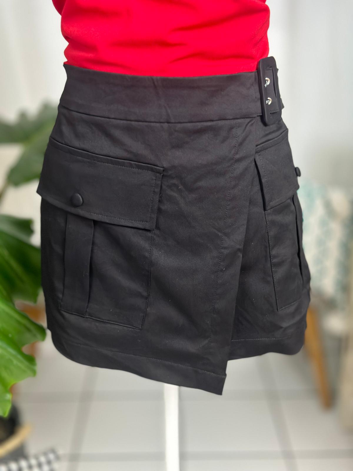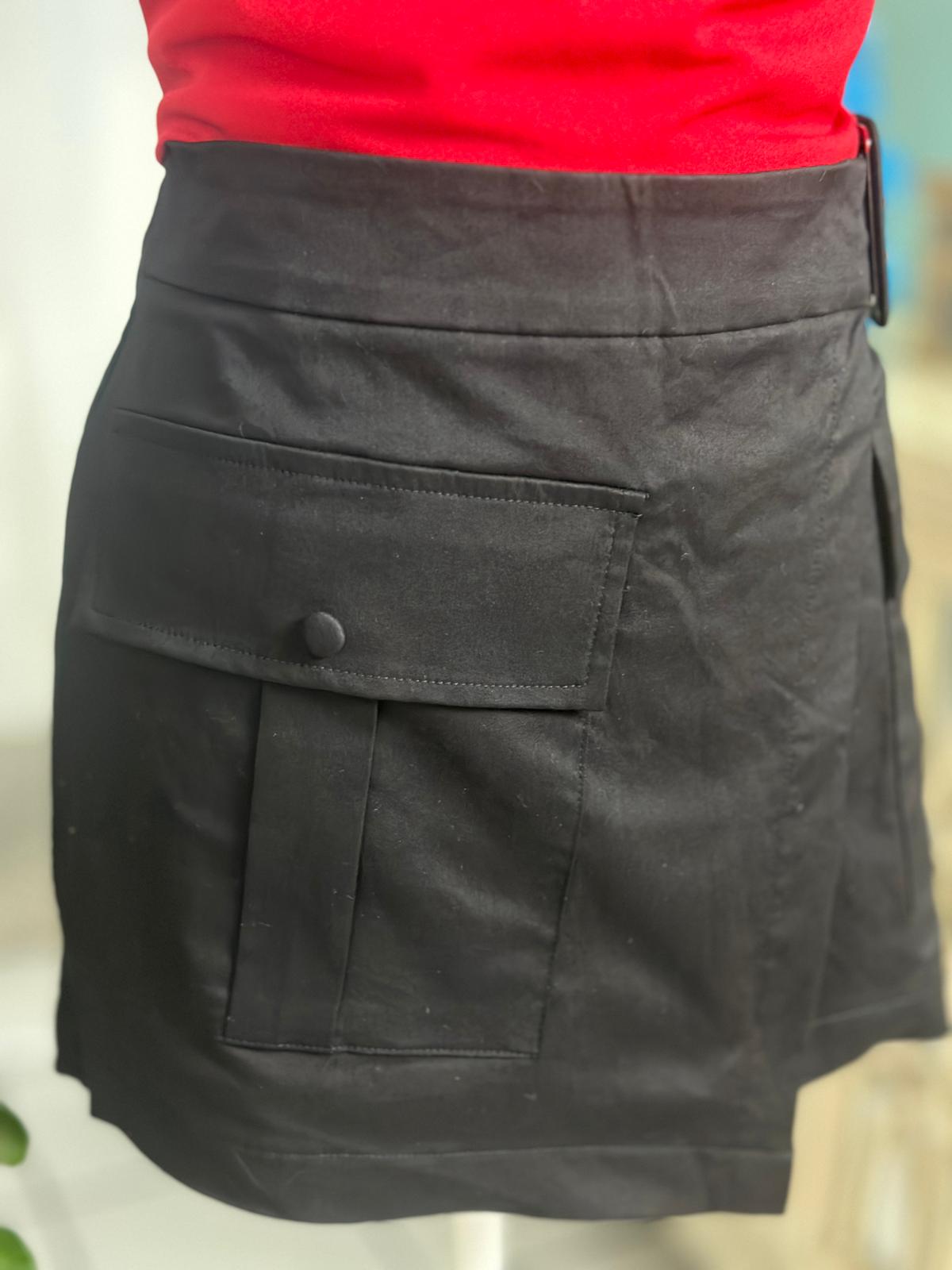 This Destellos Black High Waist Cargo Skort is stylish and versatile, with front and side cargo pockets for a utilitarian edge. Crafted from soft and lightweight fabric, its comfortable waistband ensures you’ll be comfortable all day long. Perfect for the office and beyond.