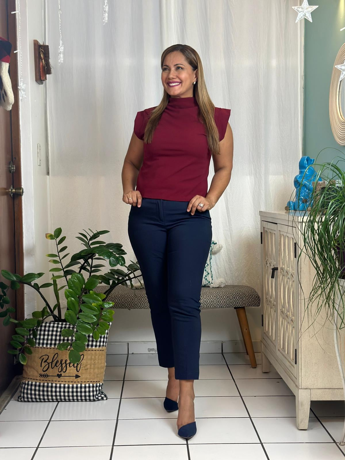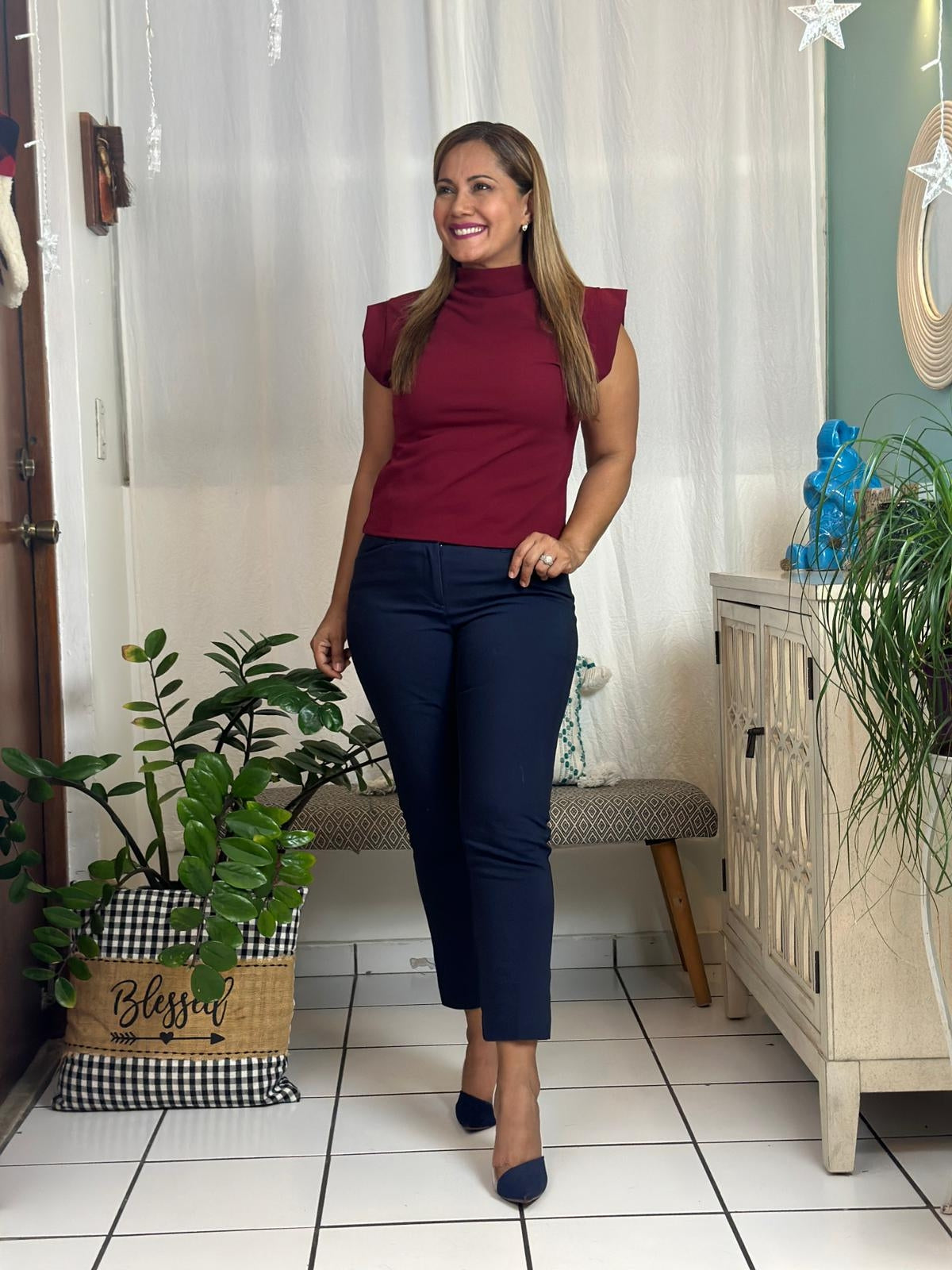 Introducing the Destellos Burgundy Mock Neck Elegant Top - a must-have for any fashion-forward wardrobe. Made from stretchy spandex, this sleeveless top boasts a solid mock neck design for a touch of sophistication. Elevate your style with this versatile and chic top.