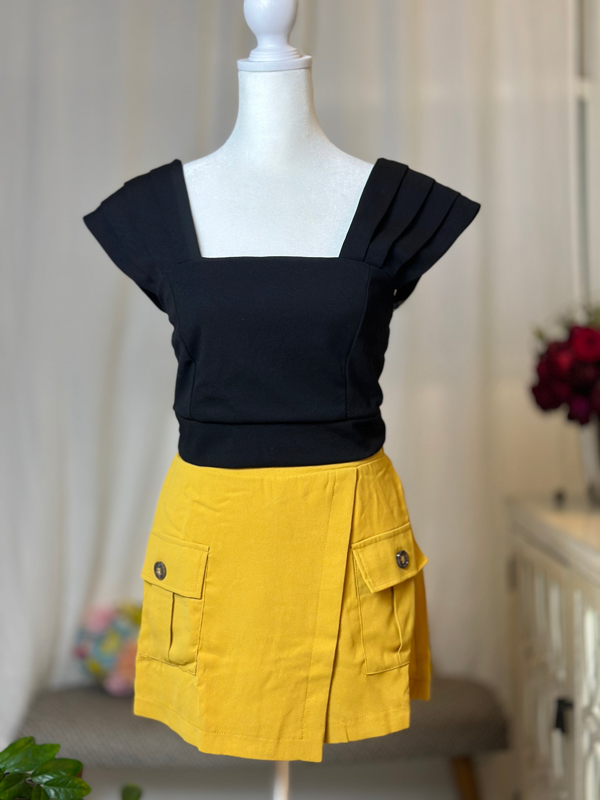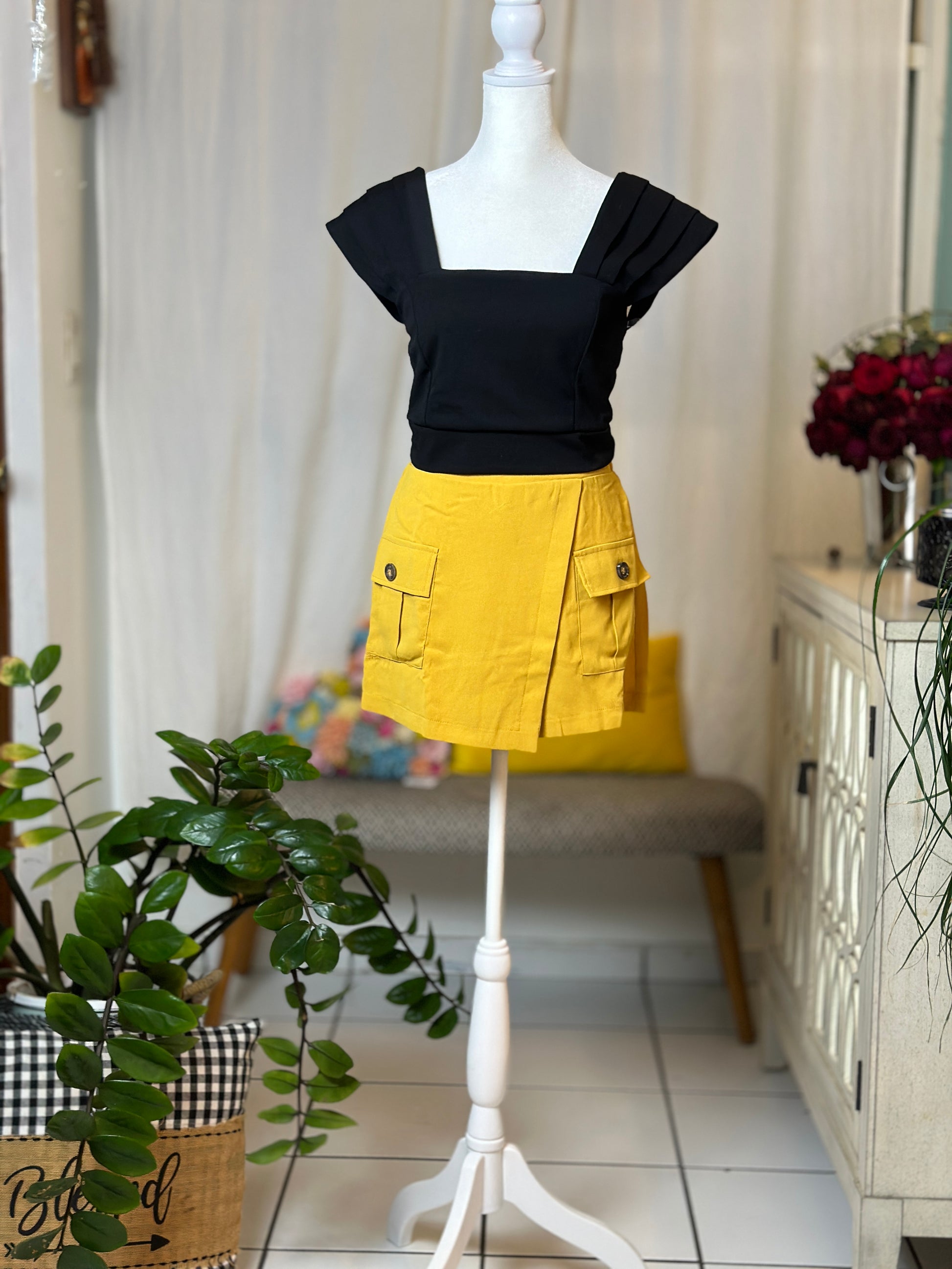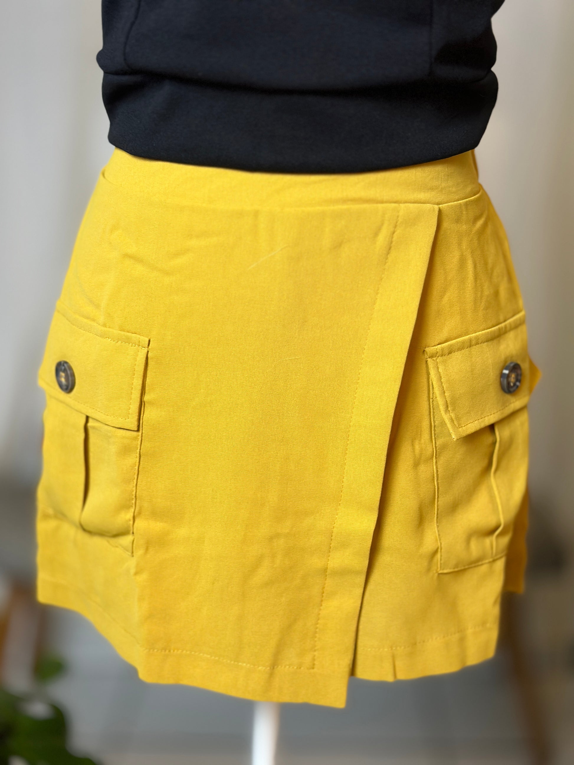Destellos Yellow High Waist Cargo Skort