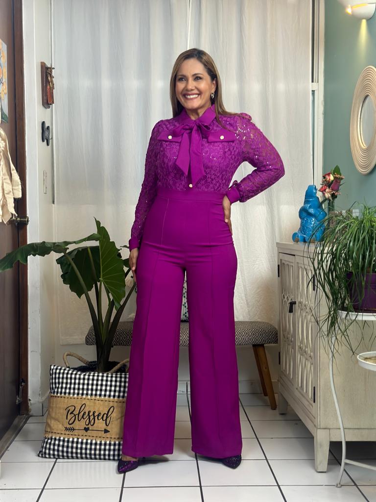 Look stunning in this Destellos Floral Lace Jumpsuit. Featuring a gorgeous magenta lace fabric, this sophisticated jumpsuit is perfect for any occasion. Its lightweight construction is comfortable and breathable, so you can look amazing without feeling weighed down.