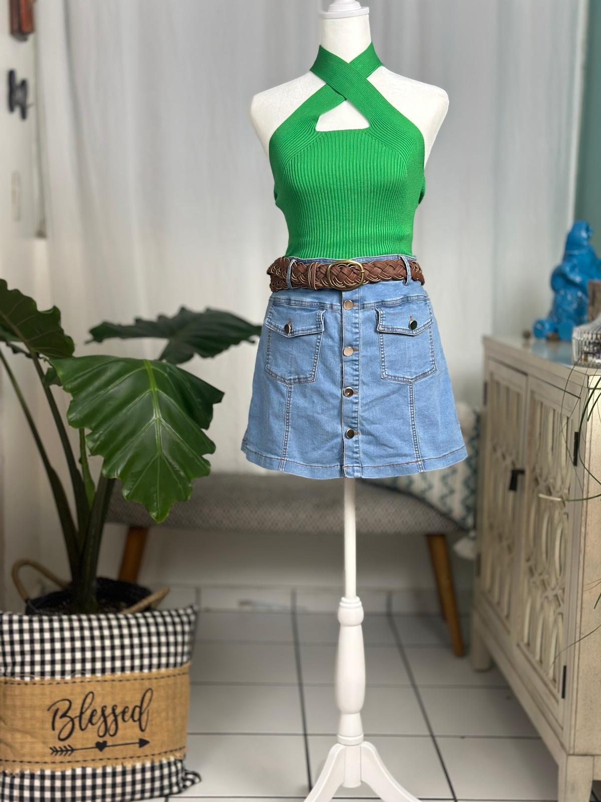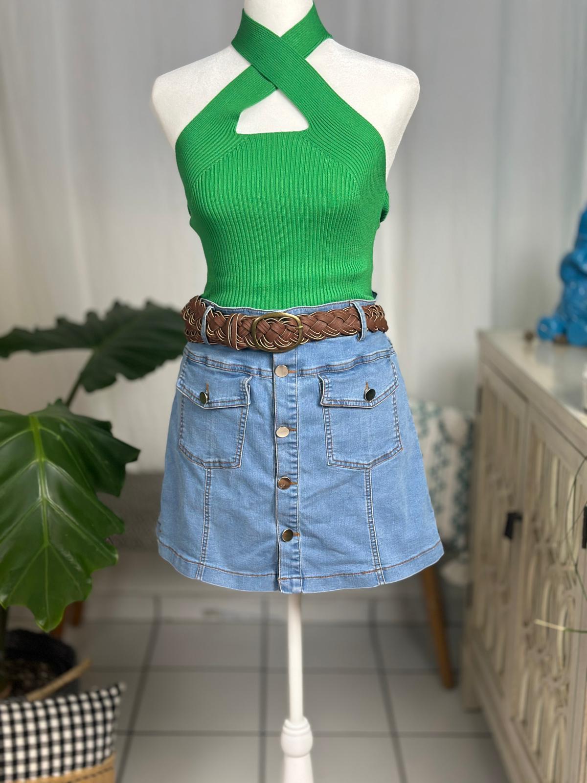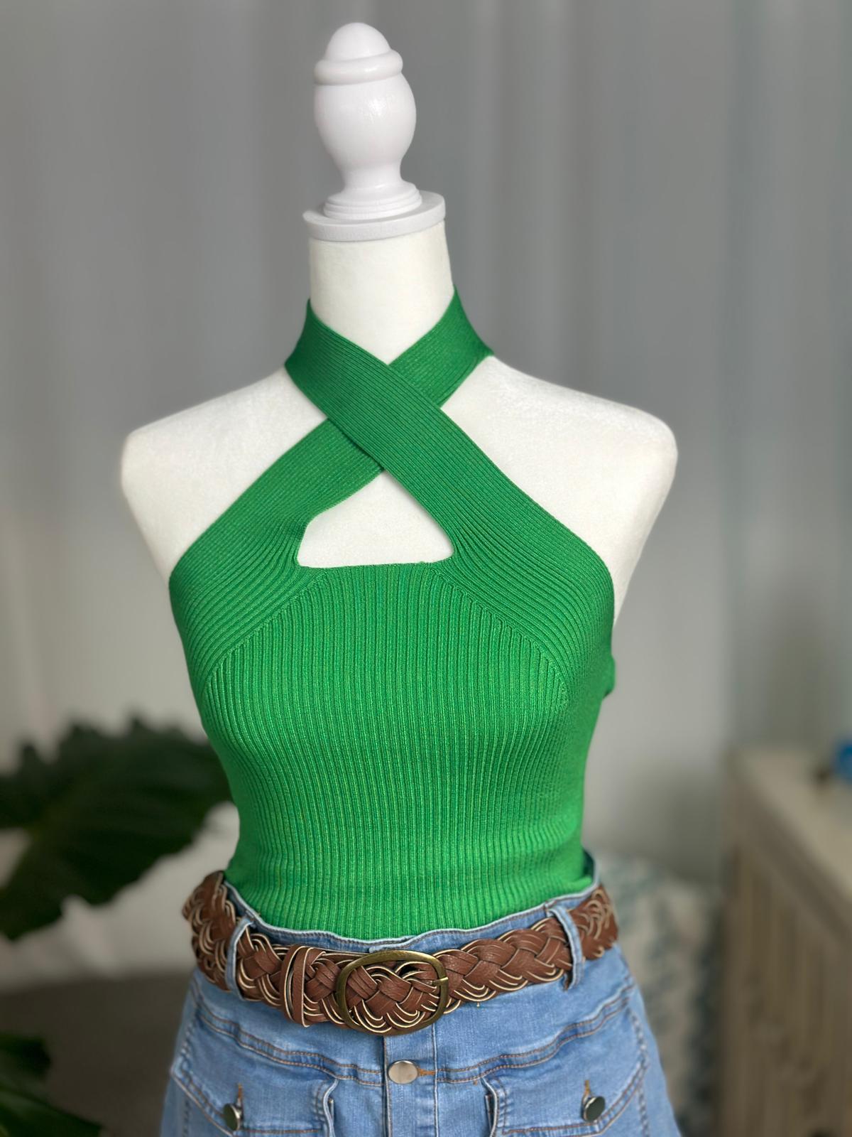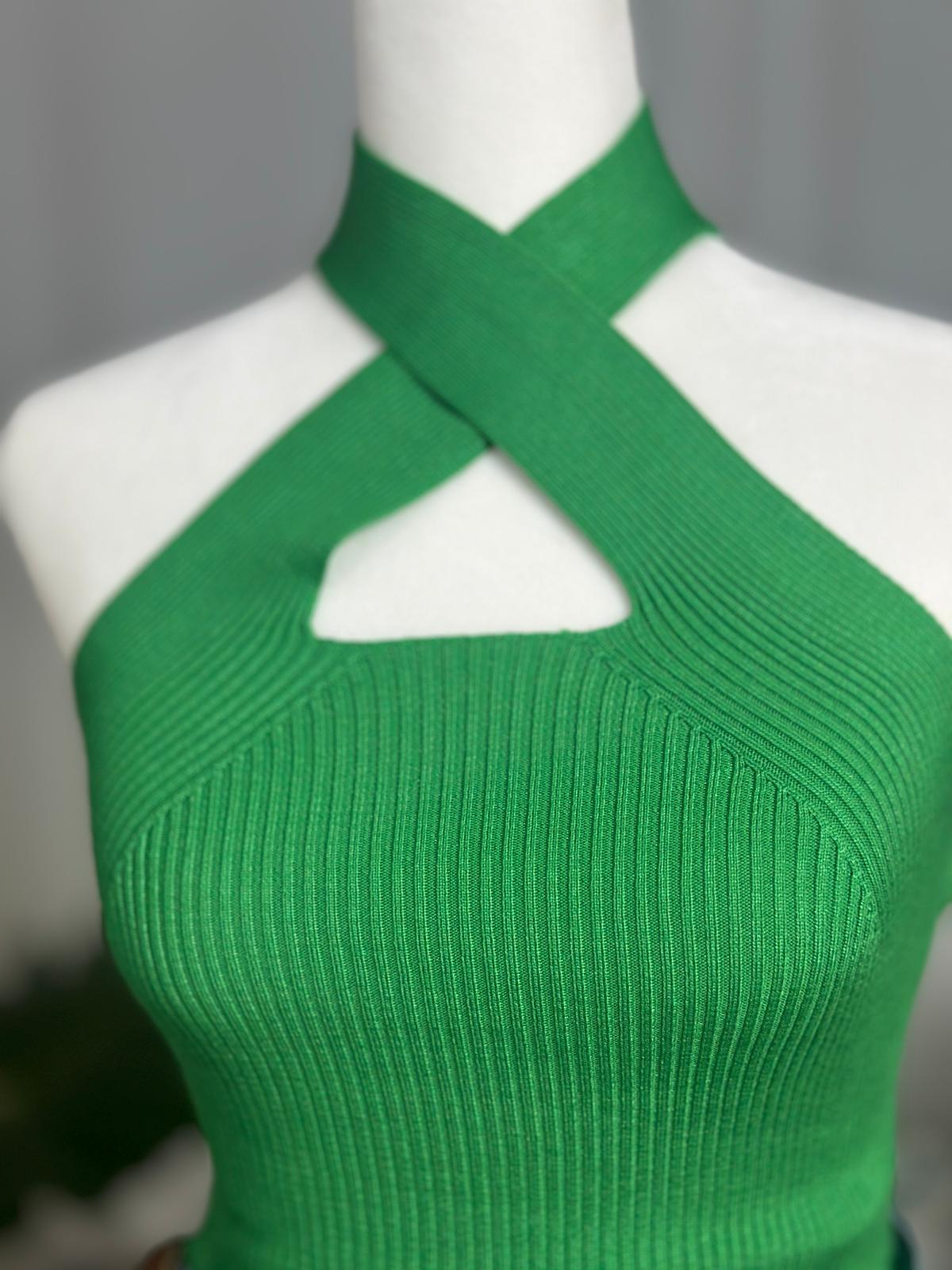 This Destellos Green X Neck Basic Top is a stylish and comfortable garment. Crafted from the finest materials, this top features an X neckline that is flattering and elegant. The soft, breathable fabric and fitted cut ensures a perfect fit for all sizes.