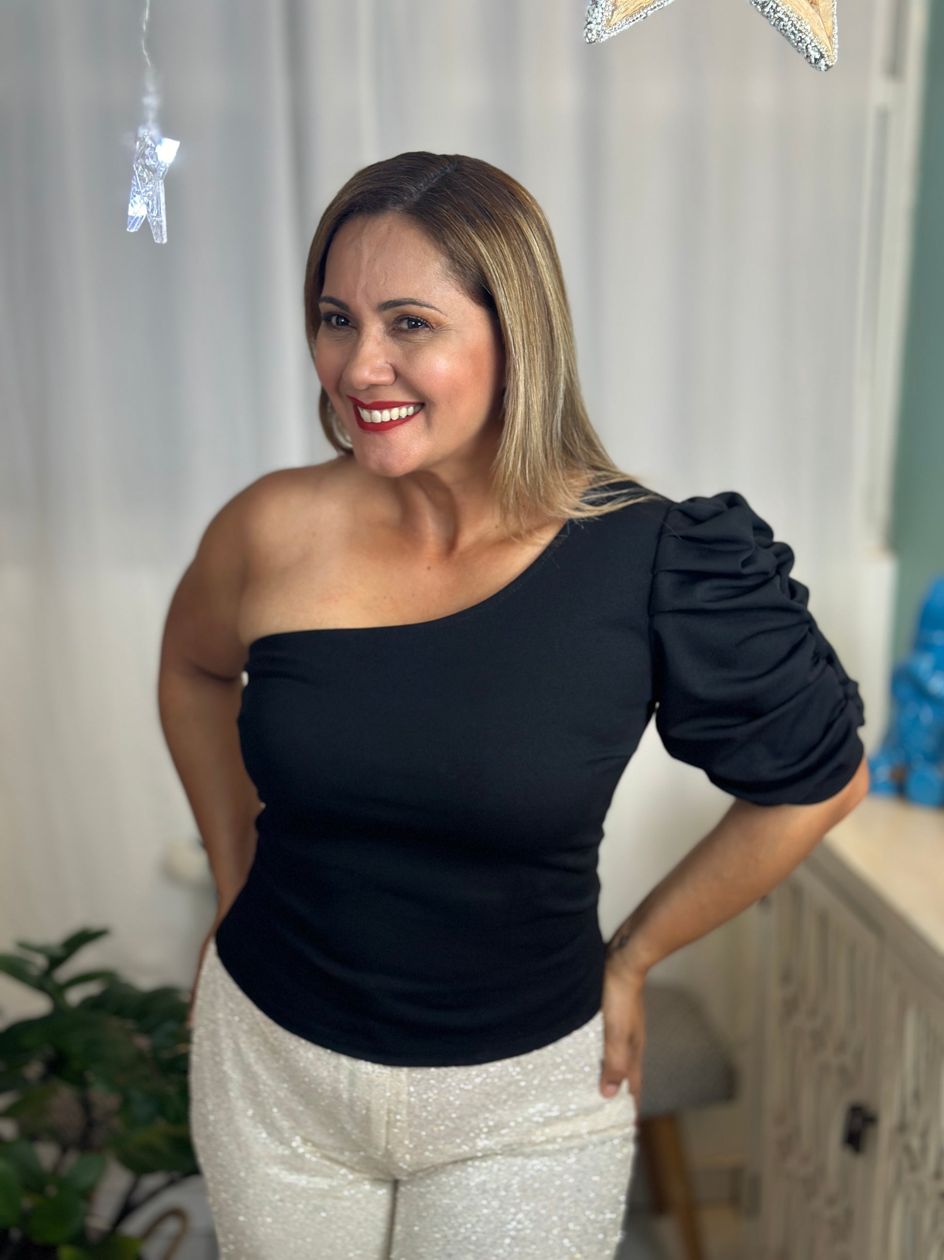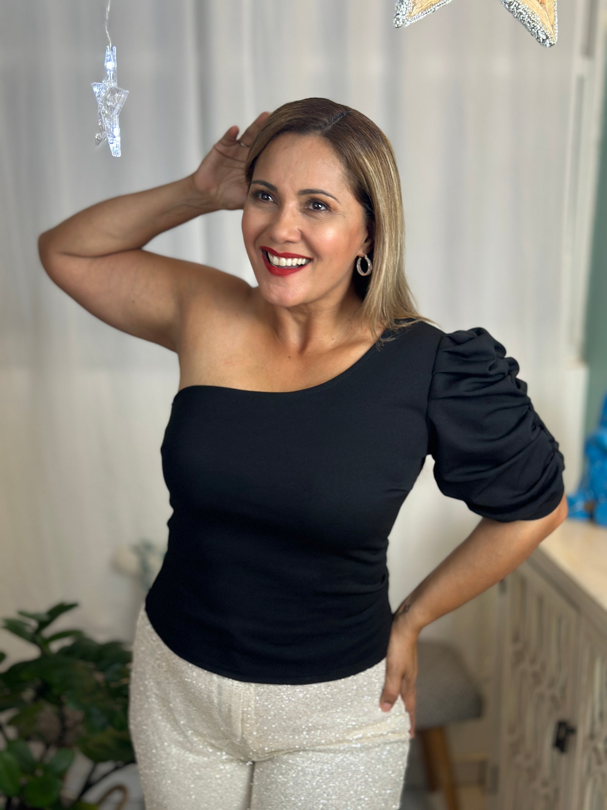 Destellos One Shoulder Elegant Black Top